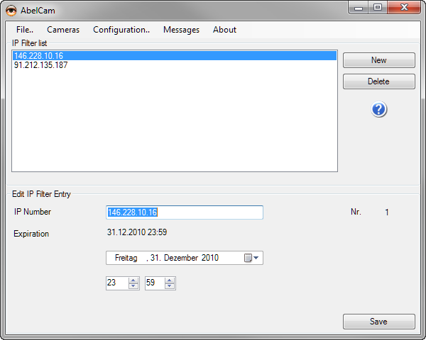 To have access to the IP Filter settings, you need to set I am a AbelCam Expert in Options.