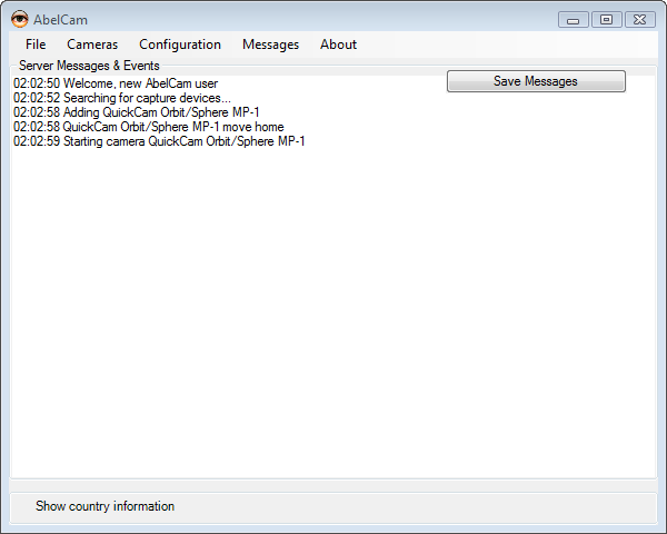 File Menu Cameras Configuration Messages About Messages![]() This form shows Server Messages and Events.