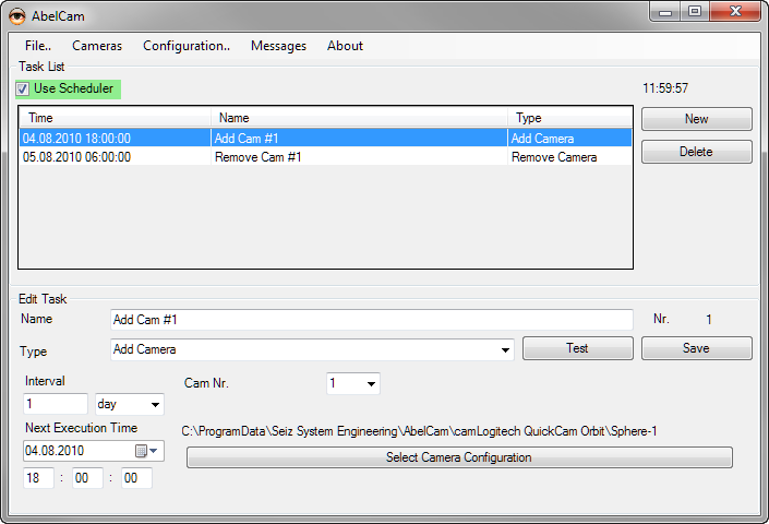 The AbelCam scheduler allows to execute tasks at regular intervals