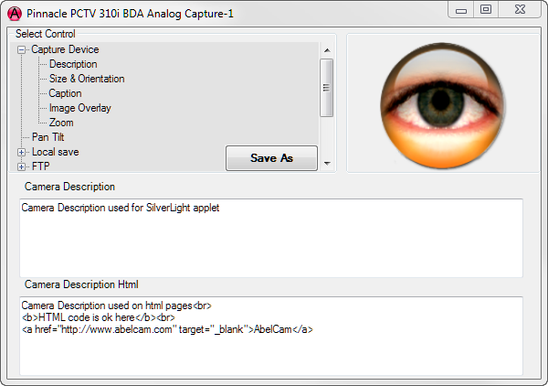 Capture Device Description Size & Orientation Caption Image Overlay Zoom Pan Tilt Local Save Email on Motion Detection FTP Config Files WMV Streaming Effects Video Save TV Tuner Web Video URL Description![]() These descriptions will be used in the web pages generated by AbelCam The plain text version above will be used for SilverLight, the Html Version below for HTML pages. You may include JavaScript code or any other html code in the Html description. Help Topics |