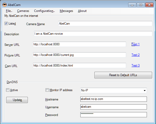Monitor IP address: when this is checked, AbelCam monitors the Windows network events and updates the DynDNS information if necessary