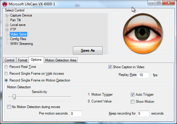 Switch to the Options register and select Record Single Frame on Motion Detection